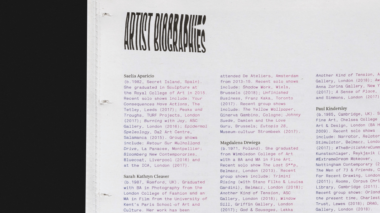 The work of Craig Sinnamon and the studio has been published internationally in books, journals and magazines including Grafik (UK), Slanted (DE), Étapes (FR), Perspecta (US) and Idea (JP). Craig has lectured at Central Saint Martins (UK), Nottingham Trent University (UK), Hochschule München (DE) and Hochschule Düsseldorf PBSA (DE). He has run design workshops at Sofia Design Week (BG) and 20plusX München (DE).